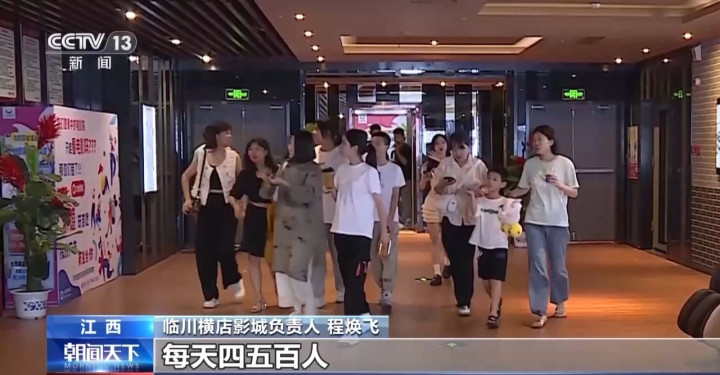 江西临川横店影城负责人程焕飞:假期我们的客流可以达到每天四五百人,上座率比平时高了百分之五十,人流上来了,我们的销售额也跟着增长。